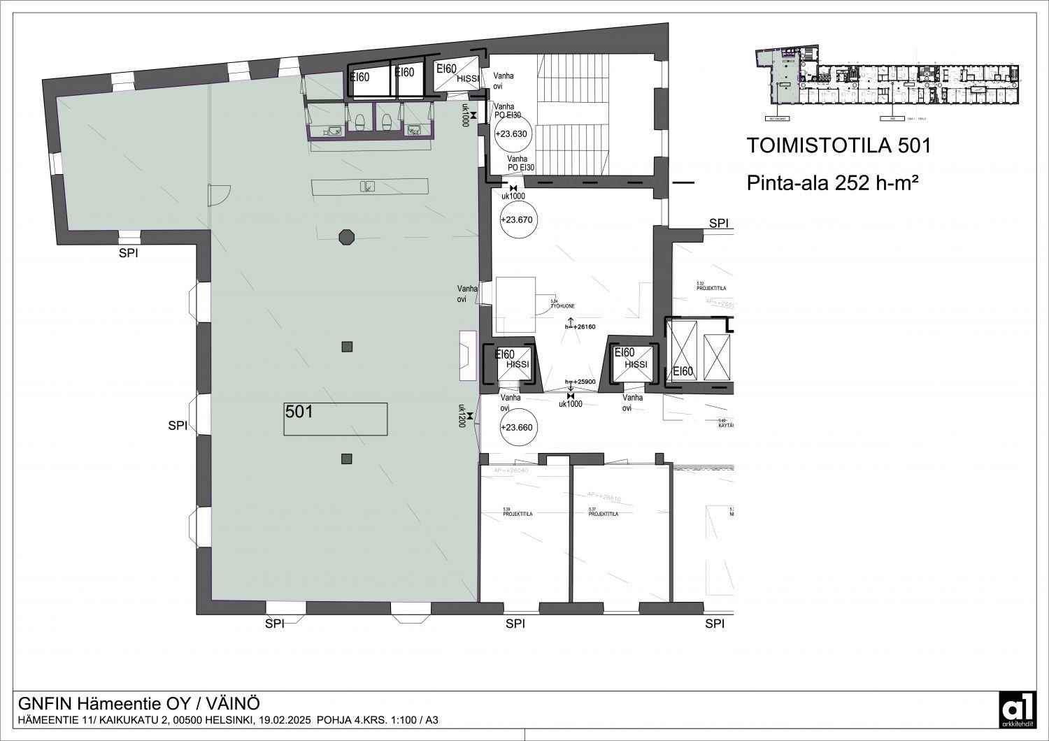 Vuokrataan Helsingin Sörnäisistä viidennen kerroksen 252 m² saneerattu toimistotila.