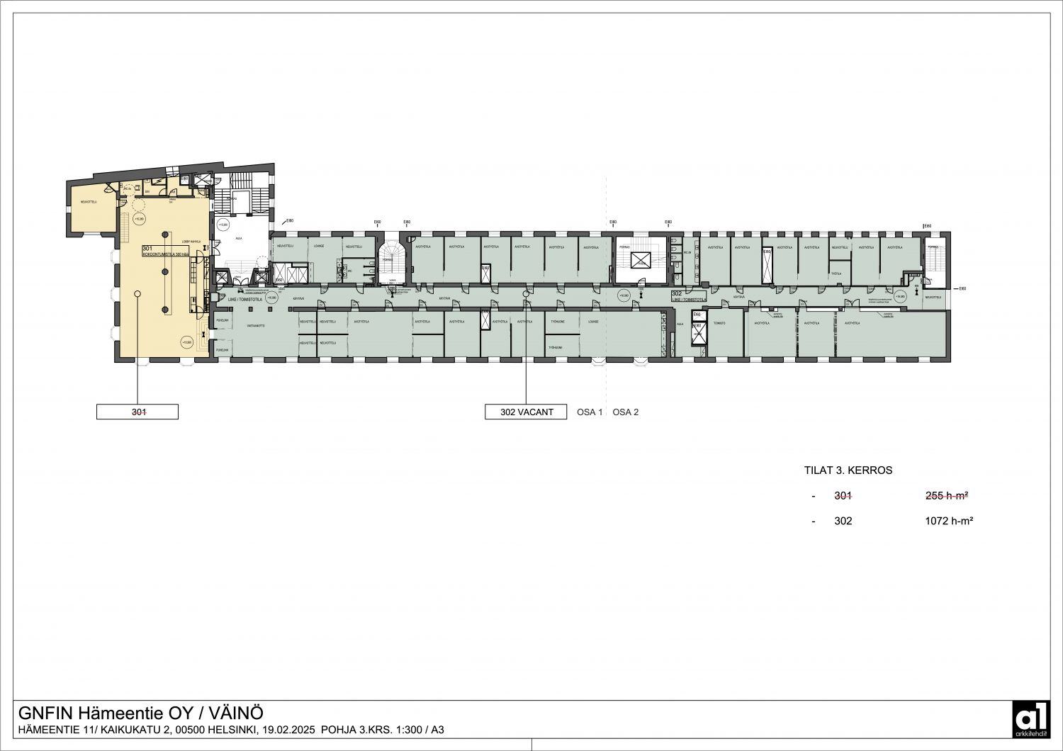 Vuokrataan Helsingin Sörnäisistä kolmannen kerroksen 1 072 m² saneerattu toimistotila.