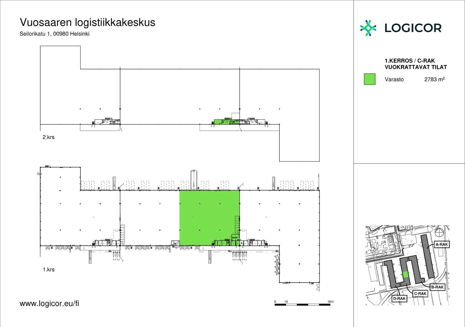 Vuokrattavana 2 783 m² varastotila Vuosaaren sataman Logistiikkakeskuksesta. Varaston vapaa korkeus on hieman yli 6 m ja lattiakantavuus 4 000 kg/m2. Varastossa on yhdeksän lastaustaskua sekä lastauslaituri ja ramppi isoilla ovilla. Tilassa on myös pieni toimisto, sosiaalitilat, keittiö ja taukotila. Isot piha- alueet. Huom. sisäkuvat eivät välttämättä ole juuri tästä tilasta.