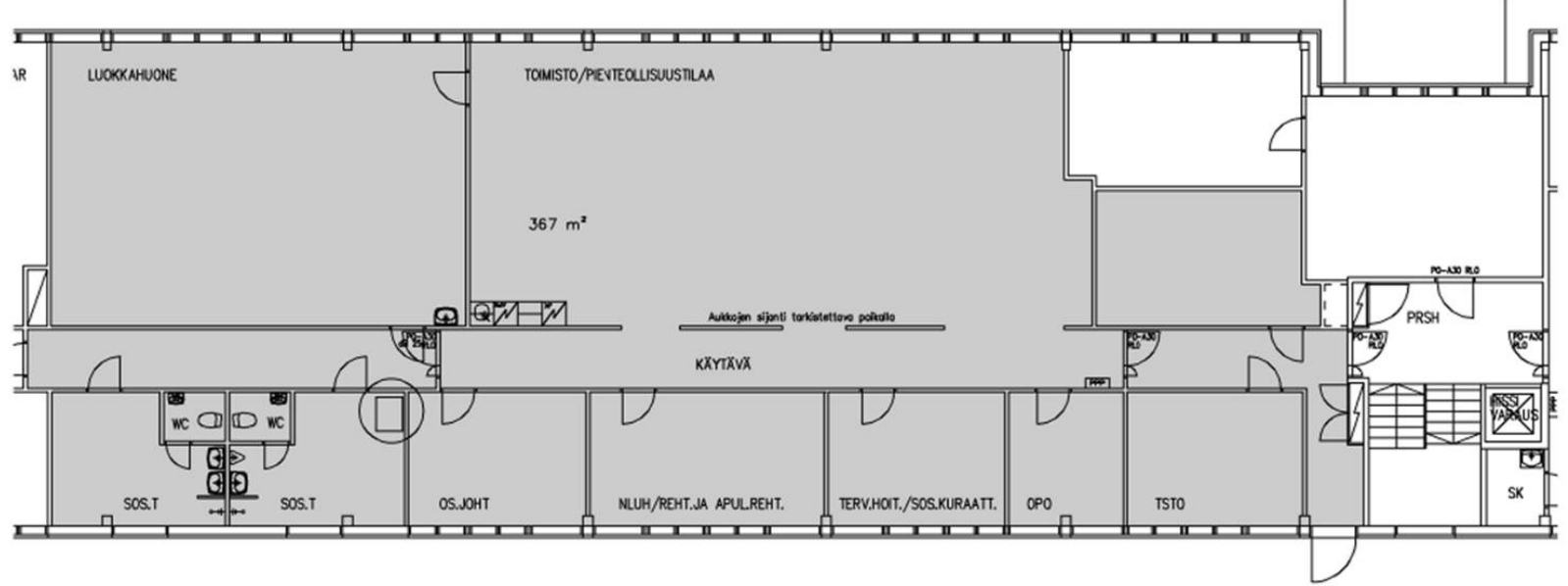 Vuokrataan toisen kerroksen peruskuntoinen 366 m² toimistotila Lakalaivan teollisuusalueelta.