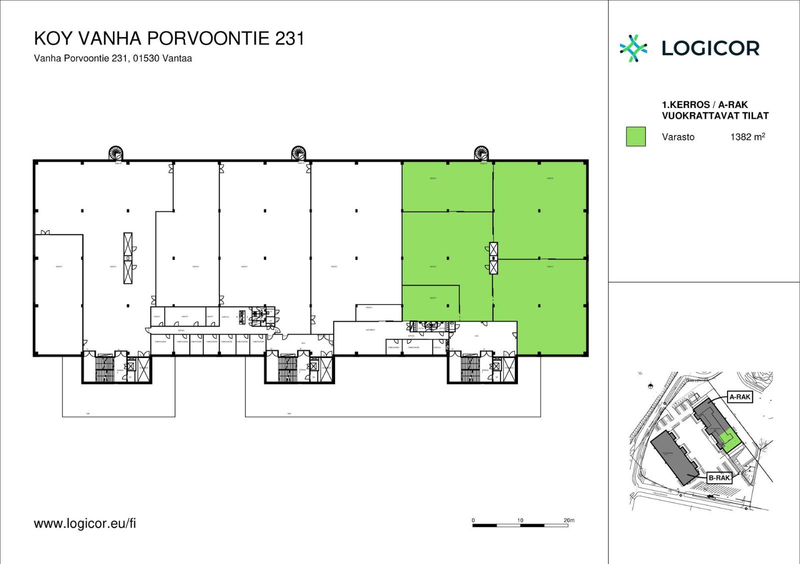 Vuokrattavana 3. kerroksessa sijaitseva 1 382 m² tuotanto-/varastotila Vantaan Hakkilassa. Kohde sijaitsee logistiikkapainotteisella Vantaan Akseli-alueella. Tällä toimisto-, tuotanto- ja varastokiinteistöllä on laaja rekkapiha ja lastauslaiturit, joilta on kulku 5000 kg:n tavarahisseillä kerroksiin. Turvallisuutta kiinteistössä lisäävät mm. tontin aitaus ja sprinklerijärjestelmä. Huom. sisäkuvat eivät välttämättä ole tästä tilasta.