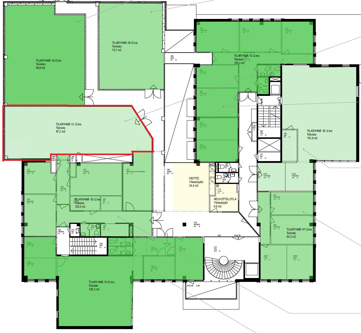 Vuokrataan siisti 85m² toimistotila kiinteistön 2. kerroksesta. Tila on tällä hetkellä täysin avointa, joten se remontoidaan täysin vuokralaisen tarpeiden mukaan. Käytössä juuri valmistunut uusi ja upea yhteiskeittiö. Yhteiset WC-tilat käytävällä. Talo tarjoaa vuokralaisten käyttöön ilmaiseksi 2 kpl neuvotteluhuoneita 1. kerroksesta. Näiden varaus järjestelmän kautta. Kiinteistöllä oma parkkihalli, josta mahdollisuus saada pysäköintioikeuksia. Talon ylimmässä kerroksessa edustavat terassi- ja saunatilat. Kellarista mahdollista vuokrata varastotilaa!
