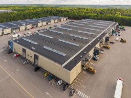 Rakennuksessa 1, lohko 2, varasto n. 1 178 m², toimisto 2. krs n. 134 m². Nykyajan vaatimukset täyttävää logistiikka- / tuotantotilaa, vapaa korkeus n. 6 m. Iso nosto-ovi maantasossa, takaovi lastaustasossa. Lattiakantavuus n. 3 000 kg/m², pistekuormakestävyys 5 000 kg/m².