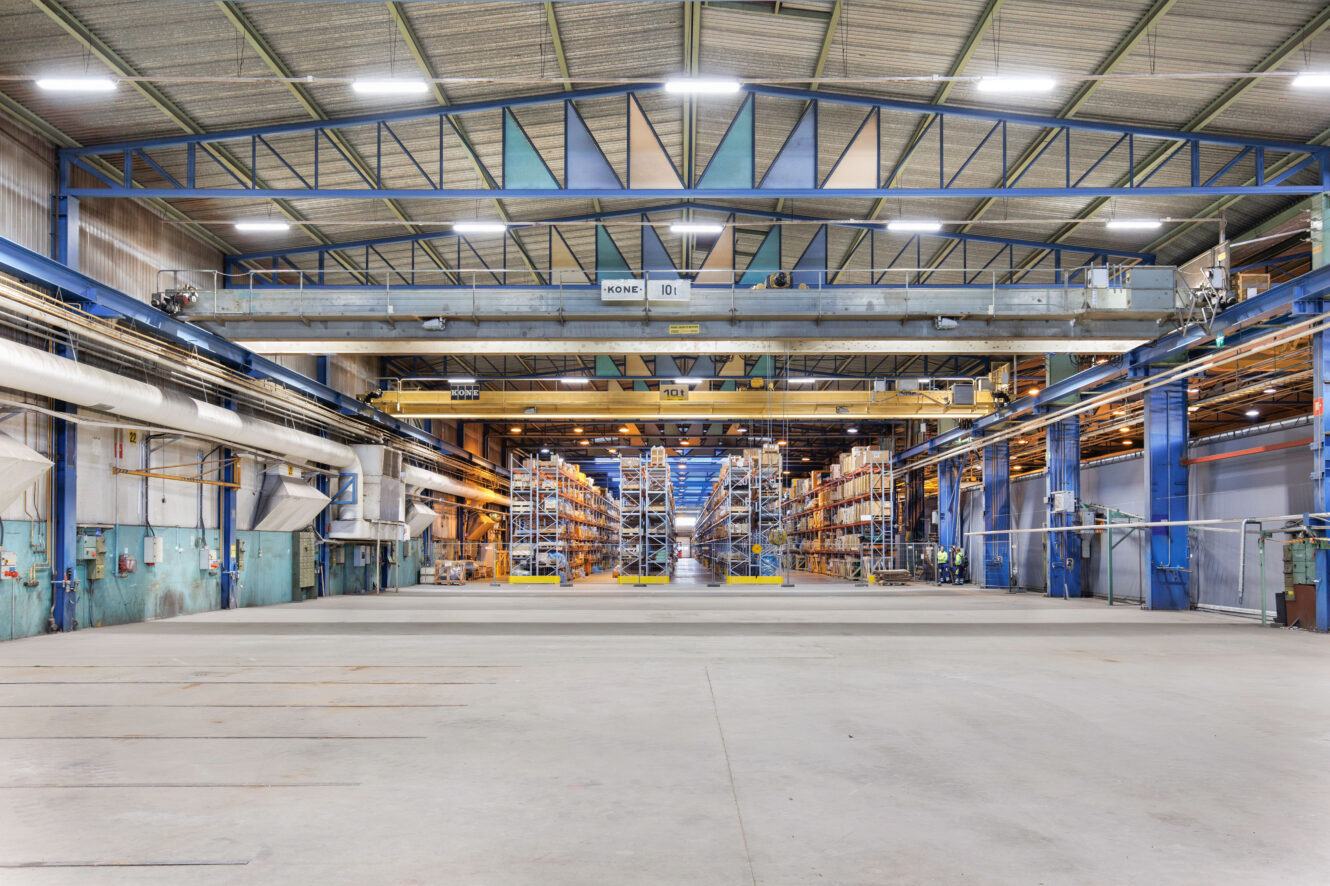 Korkeaa hallitilaa, jossa on järeä hallinosturi. Osa aidalla ja suojaseinällä erotettua tuotantohallia, oma maantason nosto-ovi. Vapaa korkeus n. 7 m. Erillisiä kaappeja vuokrattavissa sosiaalitiloista. Henkilökunnan käyttöön on tarjolla suihku- ja saunatilat sekä lounasravintola.