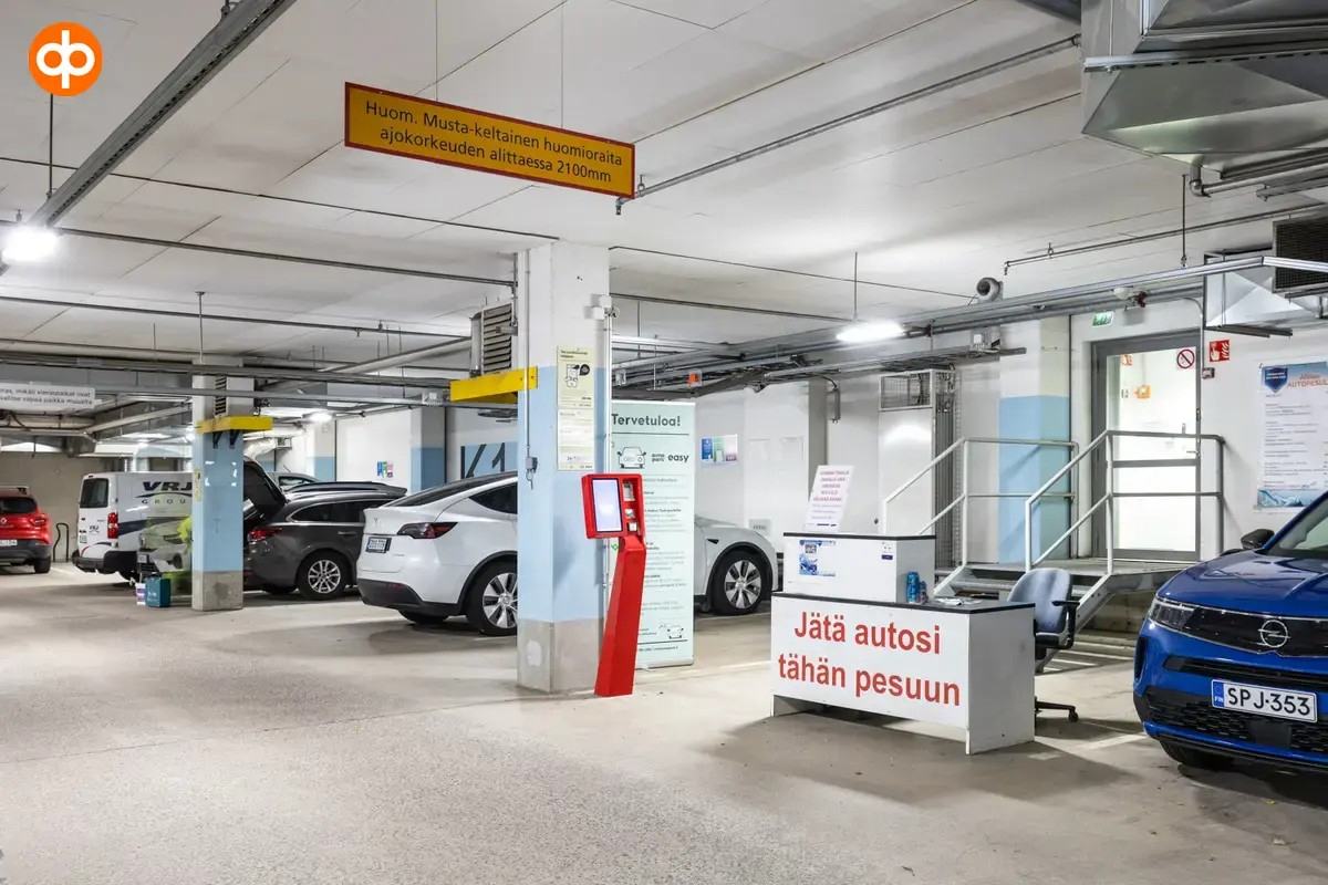 Kiinteistössä on oma lämmin autohalli, jossa on myös sähköautojen latauspisteitä. Vieraspysäköintiin löytyy kadunvarsipysäköintipaikkoja. Työmatkapyöräilijölle löytyy lukittava pyörävarasto sekä peseytymis- ja pukeutumistilat.