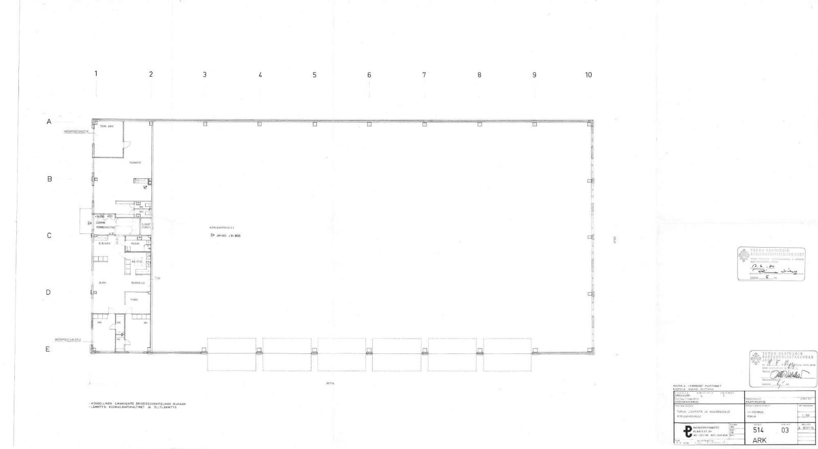 Vanhan halliosan vapaa korkeus on 5,5 m ja nosto-ovet ovat 4,5 metriä korkeita.