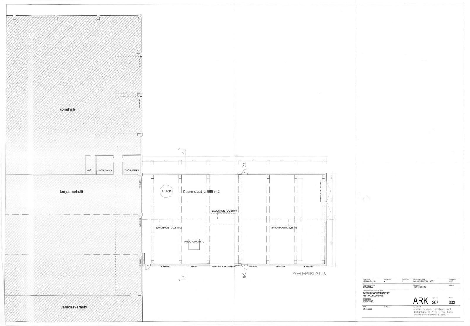 Vanhassa halliosassa on kaksi 5 tonnin siltanosturia. Laajennushallissa on valmiudet suurille siltanostureille.