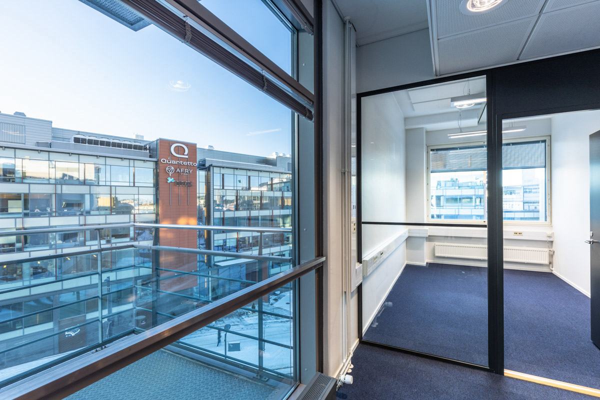 Tila on avokonttori kahdella työtilalla. Viihtyisä keittiö, wc:t ja taukotila ovat pientoimistoalueen yritysten yhteiskäytössä. Lisäksi tarjolla on kattavat business parkin palvelut. Autopaikkoja vuokrattavissa kiinteistön kellarikerroksen parkkihallista sekä piha-alueelta.