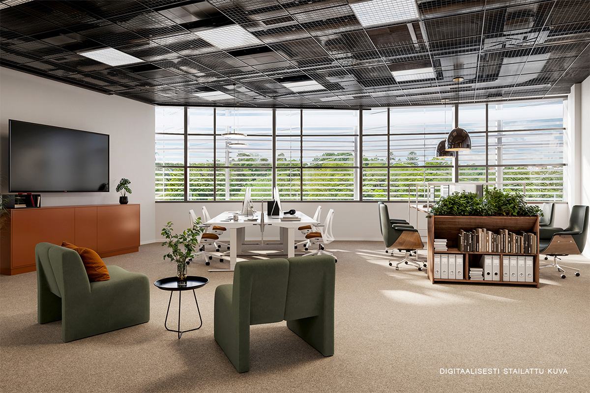 Tilaan kuuluu koko viides kerros pyöreästä toimistotalosta. Yleisesti näköalasta pääsee nauttimaan isojen ikkunoiden kautta joka ilmansuuntaan. Talossa on vuokralaisille viihtyisät sosiaalitilat, sauna, kuntosali sekä lämmin halli polkupyörille ja autoille.