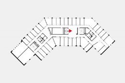 Huonetoimisto, jossa on työhuoneita, neuvotteluhuoneita, kaksi taukoaluetta keittiöillä ja useita wc tiloja.