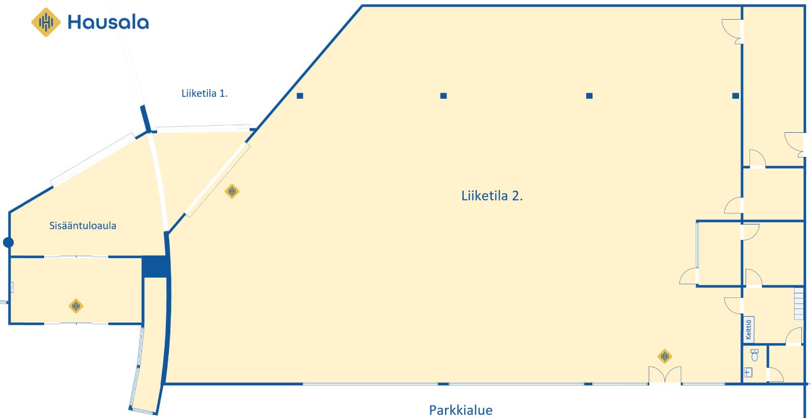 Tila sijaitsee suositulla Tiiriön alueella aivan liikenteen solmukohdassa erittäin näkyvällä paikalla. Tila on nyt jaettu kahteen osaan mutta voidaan joustavasti muokata tarpeiden mukaisesti.