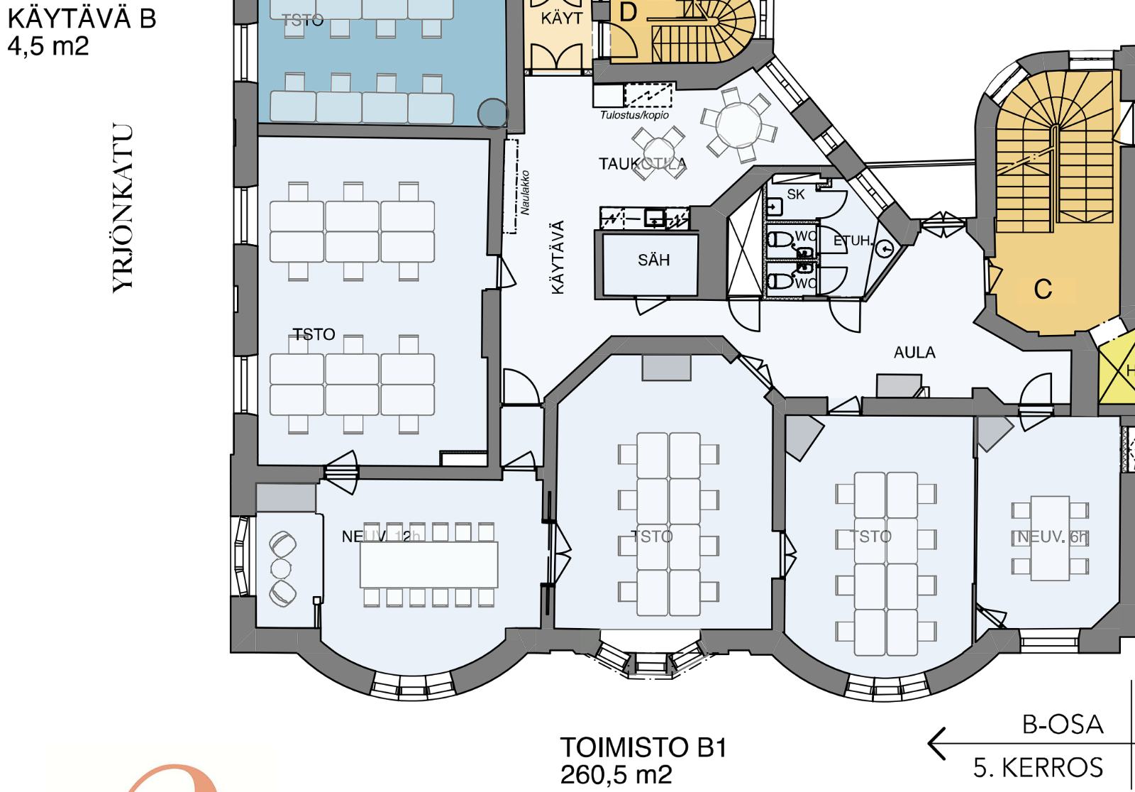 Vuokrataan Helsingin Kaartinkaupungista viidennen kerroksen heti vapaa moderni 263,2 m² toimistotila.