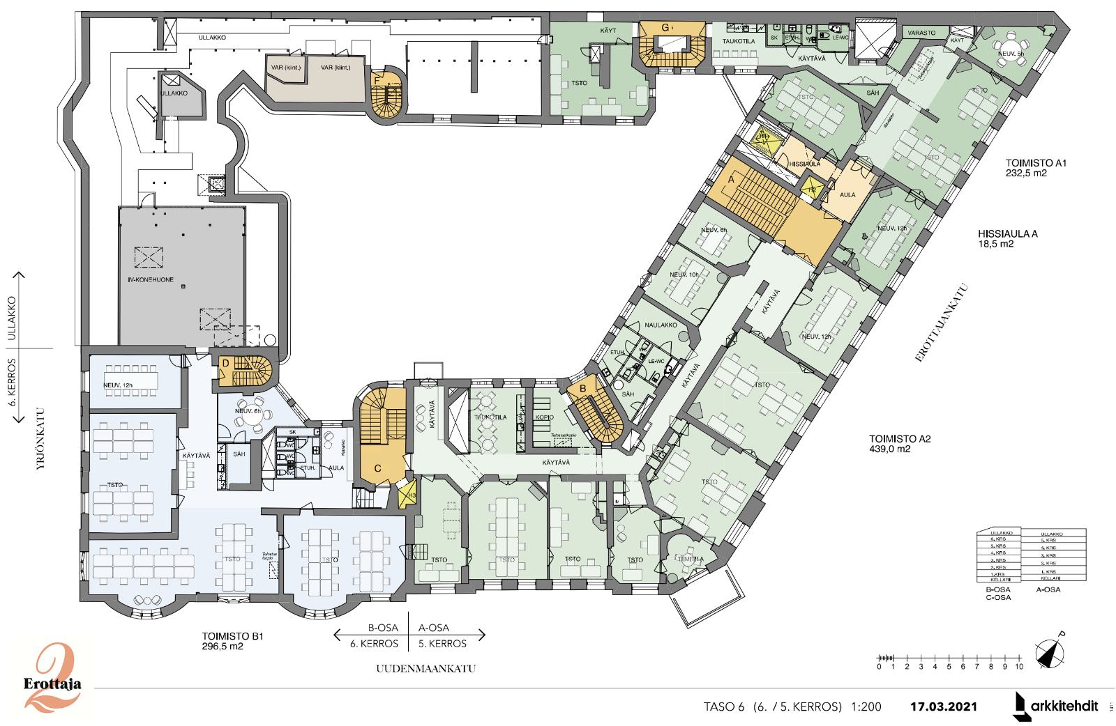 Vuokrataan Helsingin Kaartinkaupungista kuudennen kerroksen heti vapaa moderni 296,5 m² toimistotila.