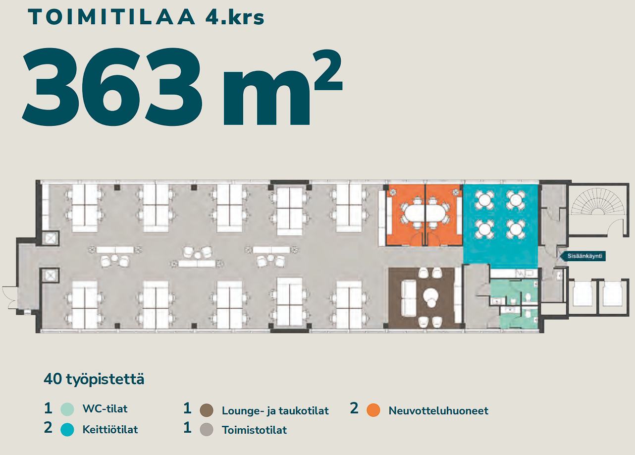 Vuokrataan Helsingin Länsi-Pasilasta neljännen kerroksen heti vapaa 363 m² toimistotila.