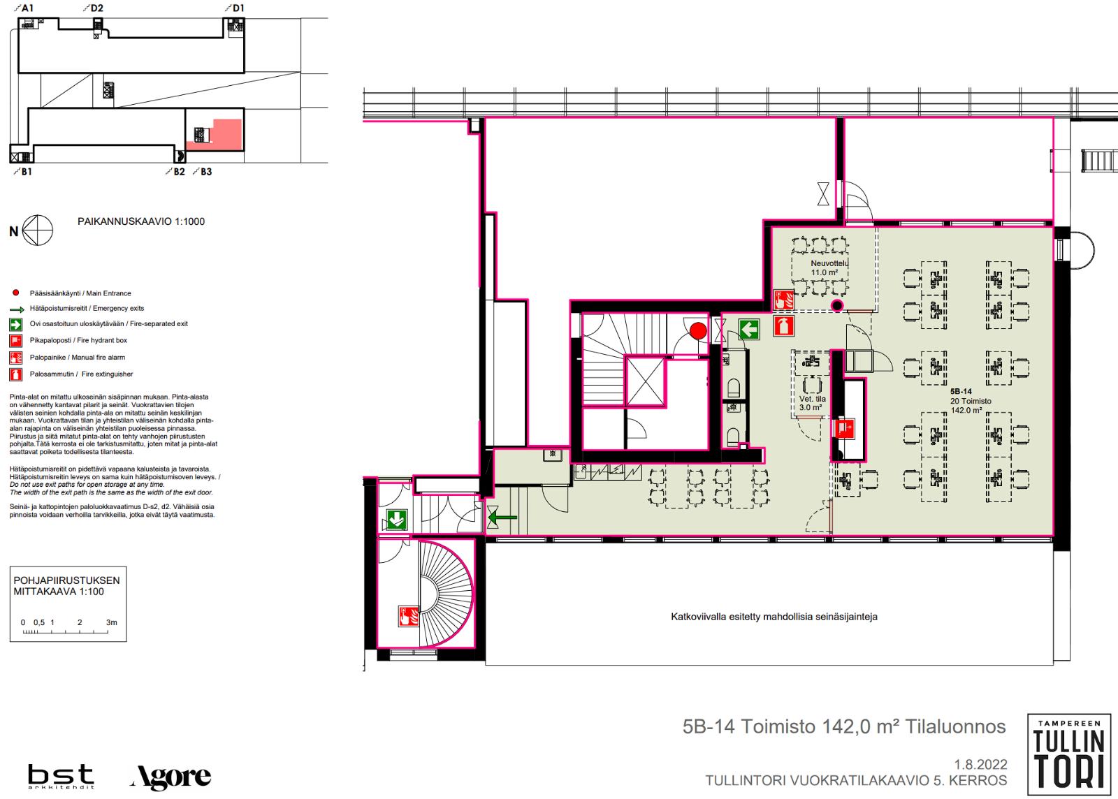Vuokrataan Tampereen Tullintorista viidennen kerroksen heti vapaa 142 m² toimistotila.