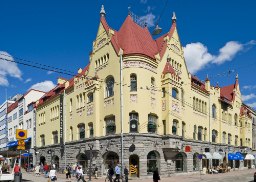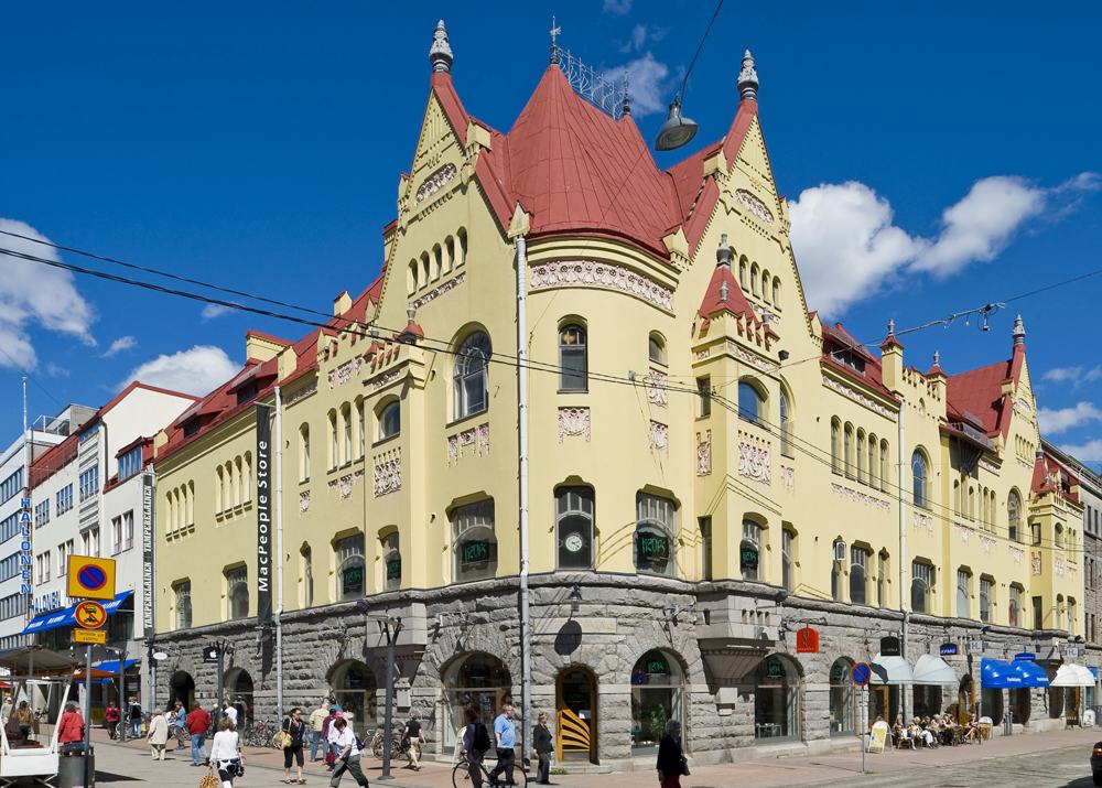 Tämä alun perin Kauppaneuvos Tirkkosen rakennuttama jugendtyylinen liiketalo Tampereen keskustassa on yksi kaupungin kauneimmista helmistä. Arkkitehdit Lars Sonck ja Birger Federley suunnittelivat talon, jossa on nähtävissä 1900-luvun alun putkipostilaitteisto.