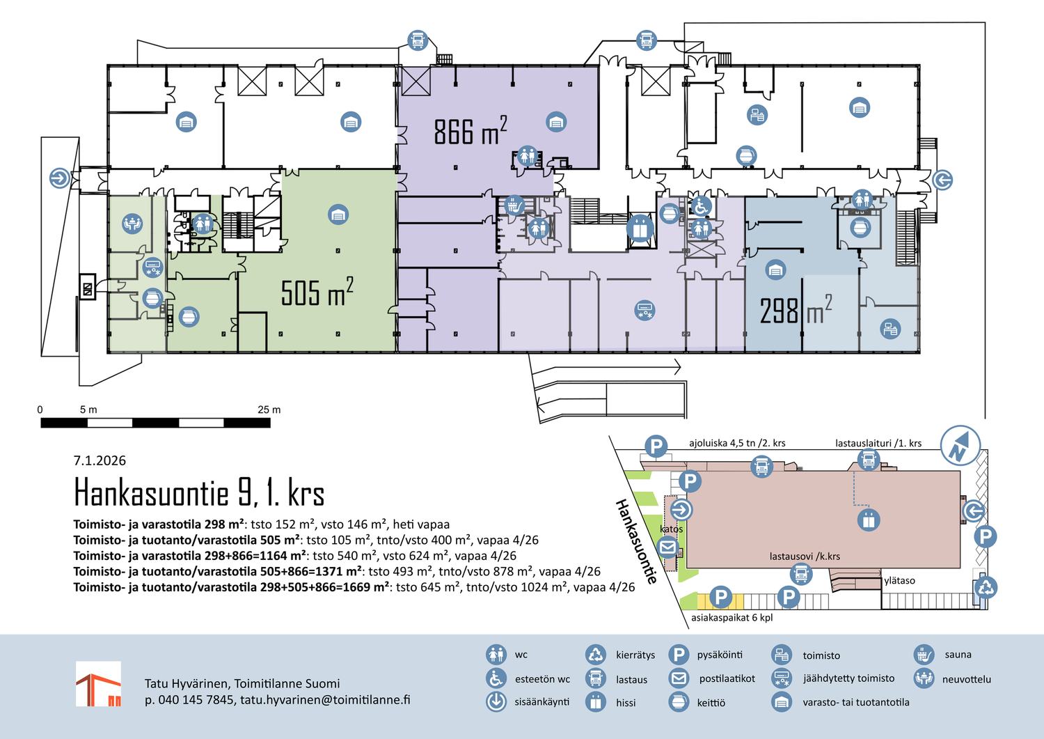 Vuokrataan toimitiloja, jotka koostuvat yhdistelmästä varasto-, toimisto- ja tuotantotiloja 298 - 1 669 m² koossa. Pohjakuvassa esitettynä eri vaihtoehtoja tilojen yhdistelmistä!