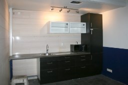 Tiloissa on toiminut pitkään autopalvelualan yritys, mutta tila ei sovellu autopesulaksi! Tilan korkeus on noin 3 m ja sinne johtaa pihalta kaksi omaa nosto-ovea (leveys n. 3 m x korkeus 2,3 m) ja taitto-ovi (leveys n. 2,8 m x korkeus 2,6 m). Tilassa on keittiö ja aula tilat.
