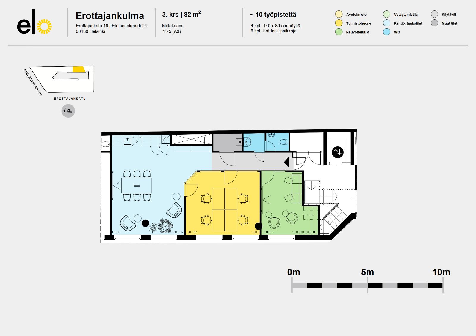 Vuokrataan Helsingin keskustasta kolmannen kerroksen 82 m² toimistotila.