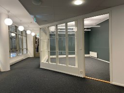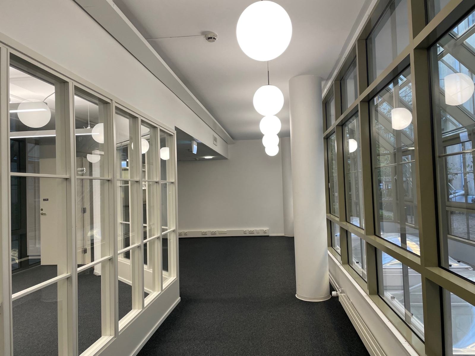 Toimistotila sijaitsee alkuperäistä rakennusta täydentävässä uudemmassa pihasiipirakennuksessa. Ikkunat avautuvat kiinteistön omalle viihtyisälle sisäpihalle. Tila muuntuu helposti myös huonetoimistoksi.