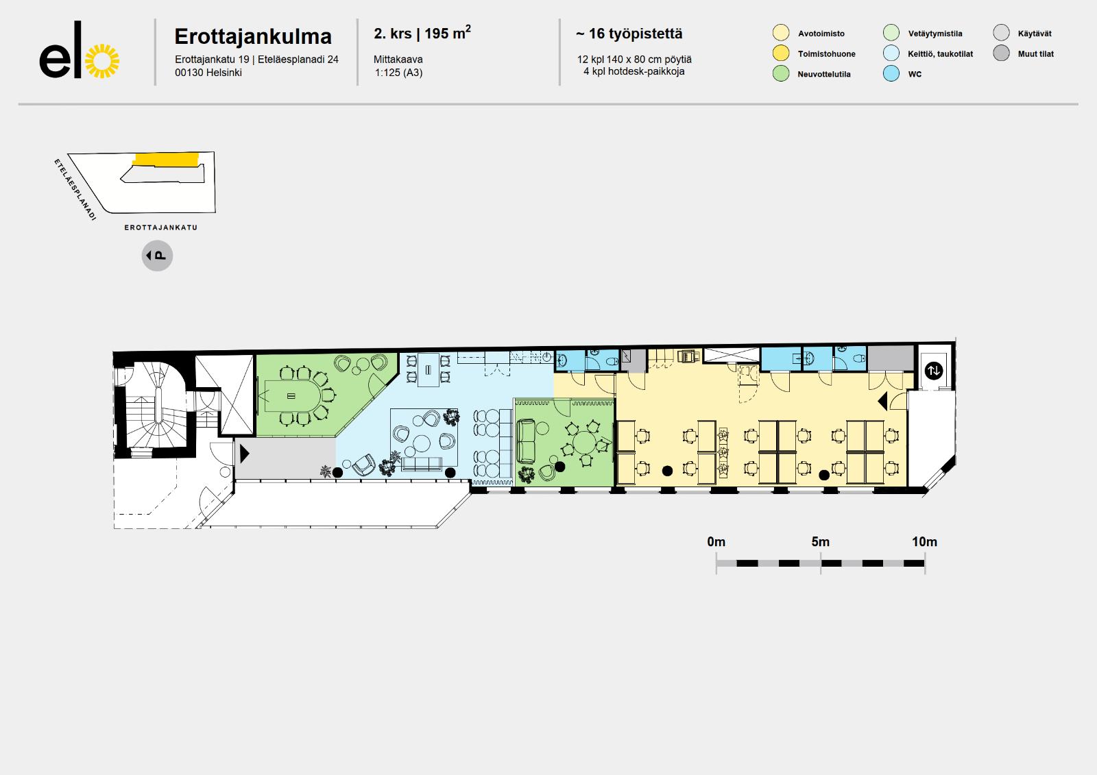 Vuokrataan Helsingin keskustasta toisen kerroksen 195 m² toimistotila.