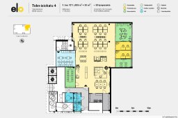 Toimisto koostuu avotyötilasta sekä useammasta ryhmätyötilasta. Lisäksi oma taukoalue keittiöllä sekä wc tilat.