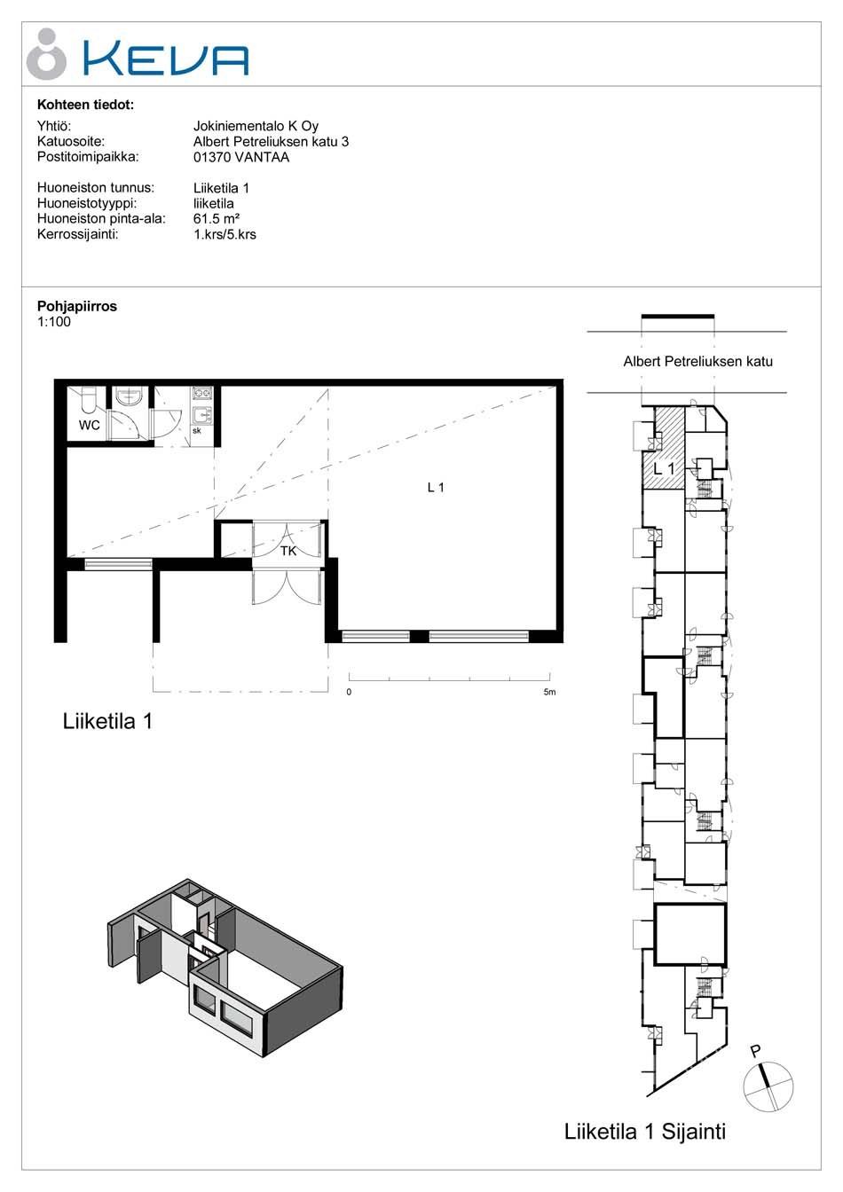 Vuokrataan 1.10.2025 vapautuva katutason siisti 61,5 m² liiketila Vantaan Jokiniemestä. Tila on avotilaa varustettuna minikeittiöllä ja wc- tilalla. Kohteen sijainti on loistava, ainoastaan 500 metrin päässä Tikkurilan juna-asemalta.