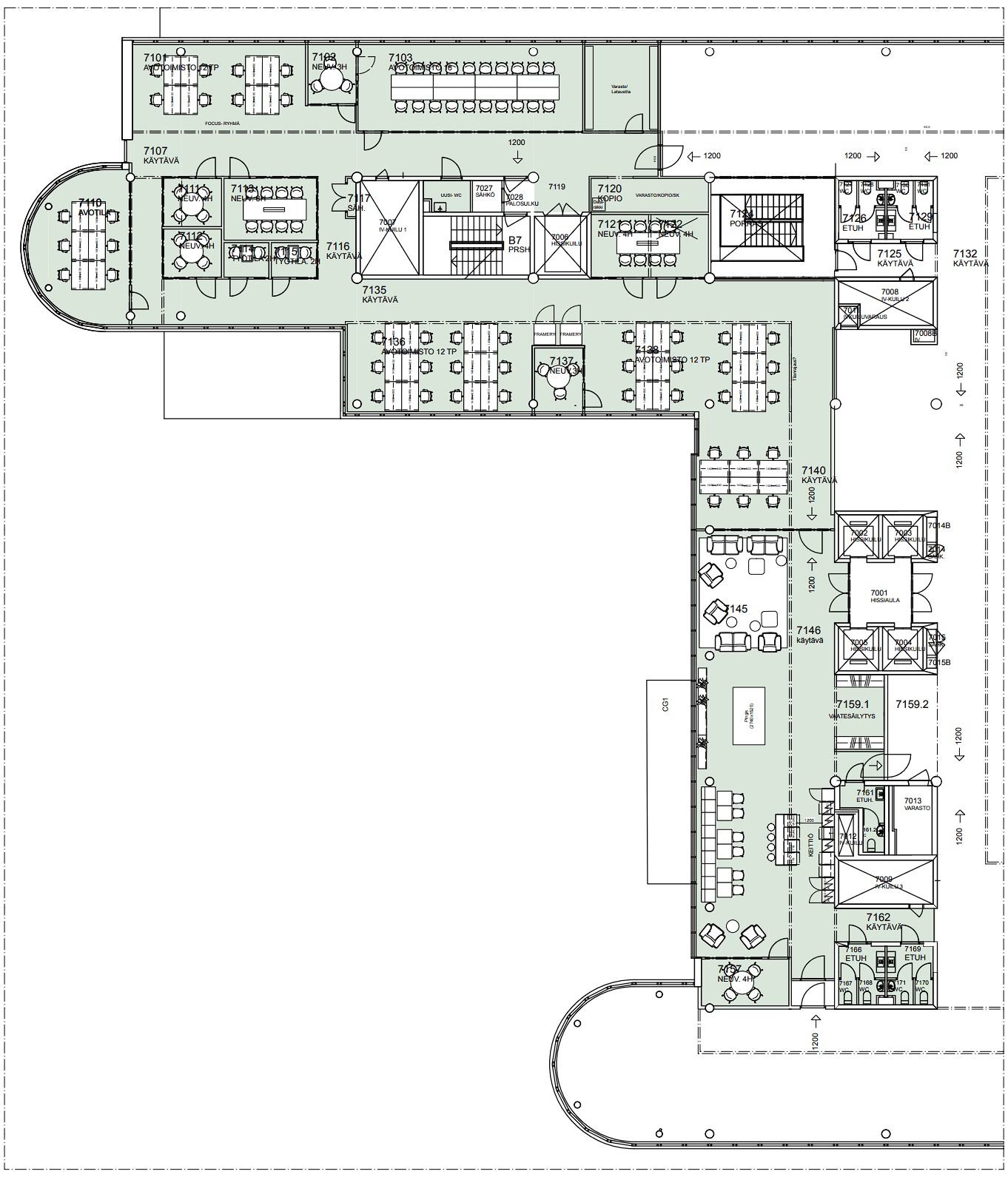Vuokrataan Helsingin Ruoholahdesta seitsemännen, ylimmän kerroksen 674 m² remontoitu toimistotila.
