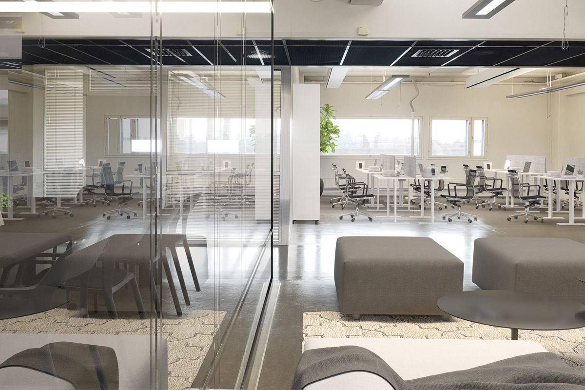 Vuokrataan neljännen kerroksen 133 m² toimistotila Technopolis Aviapoliksesta, Vantaalta. Tässä toimistossa on avotilaa, kaksi huonetta sekä oma keittiö ja wc