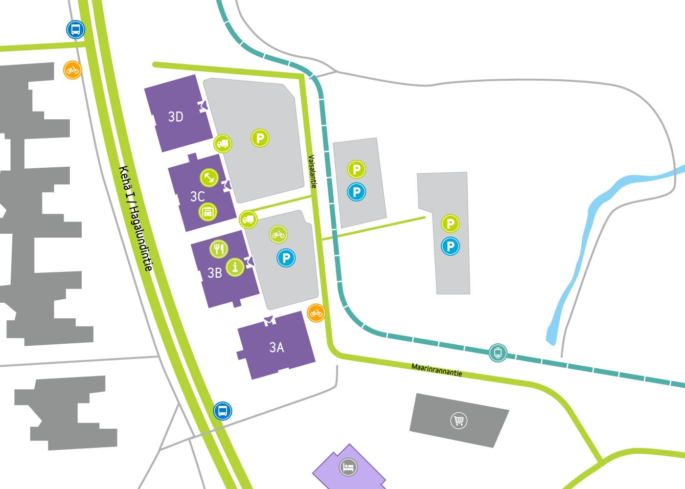 Kampuksen sijainti Kehä I:n varrella on erinomainen — Helppo saavutettavuus metrolla, bussilla, pikaratikalla ja autolla. Kampus sijaitsee myös lähellä Aalto- yliopistoa ja teknologiaosaamisen keskittymää – tämä on ihanteellinen paikka yhteistyölle ja verkostoitumiselle!