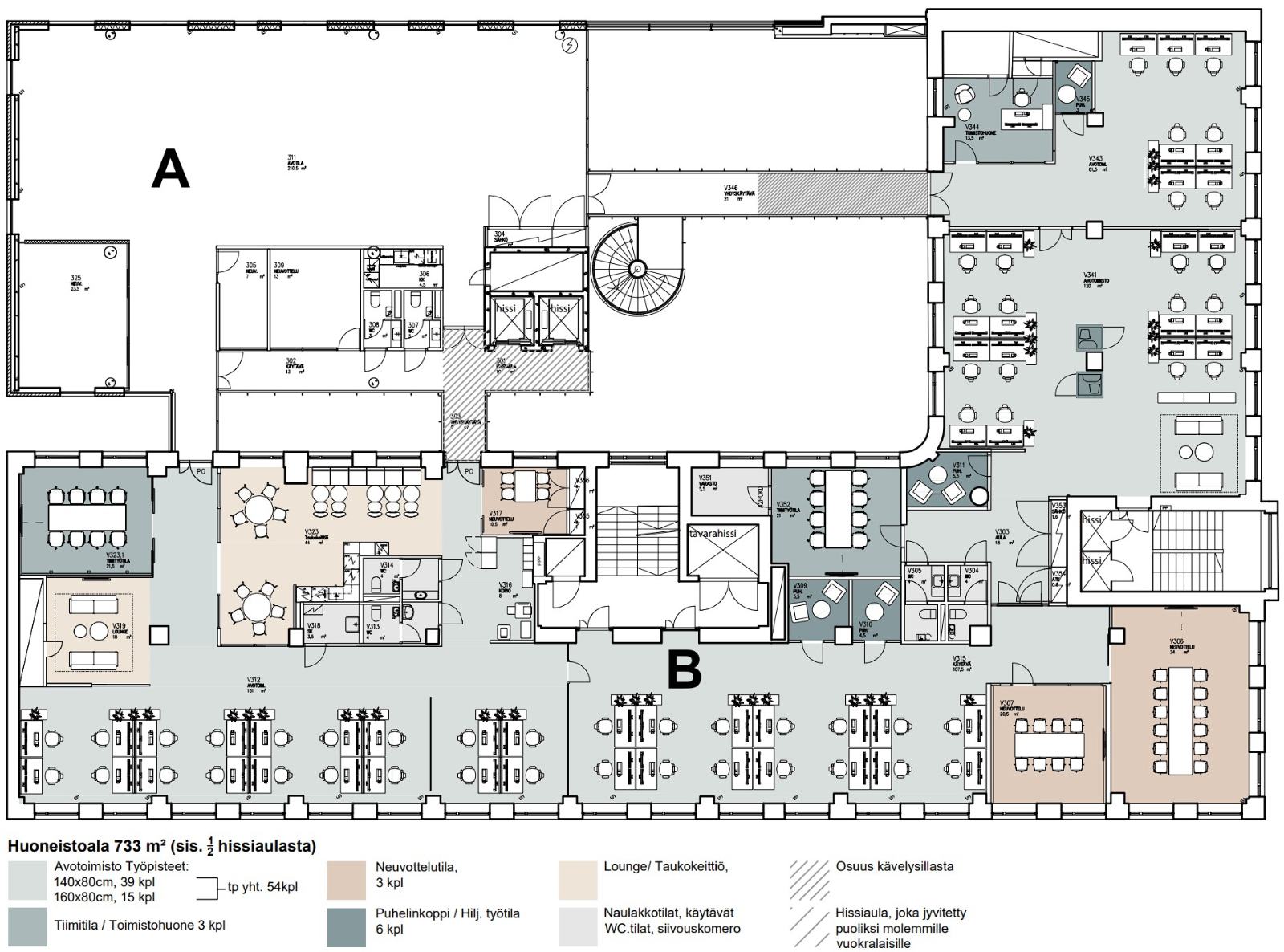 Vuokrataan Helsingin Hakaniemestä kolmannen kerroksen 733 m² toimistotila.