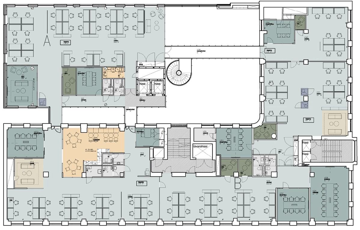 Vuokrataan Helsingin Hakaniemestä kolmannen kerroksen 1 035 m² toimistotila.