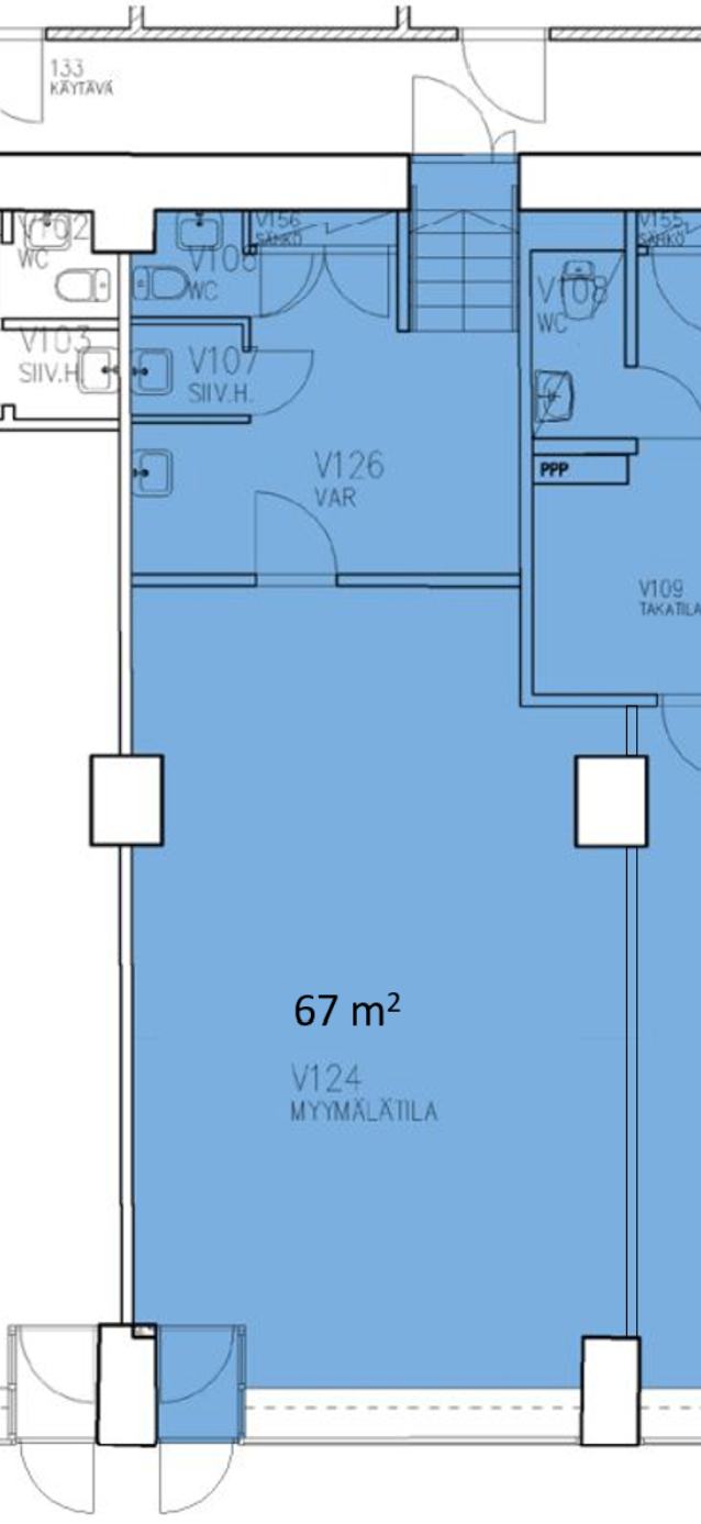 Vuokrataan Helsingin Hakaniemestä katutason 67 m² liiketila.