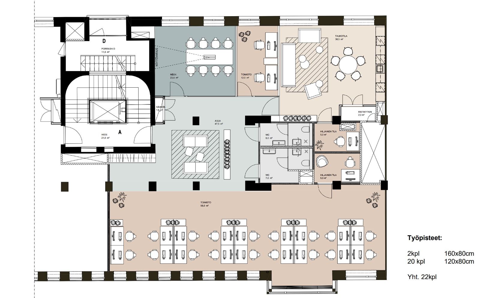 Kiinteistö valmistui mittavasta remontista vuonna 2022. Toimistotila on remontoitu ja se viimeistellään vuokralaisen tarpeen mukaisesti.