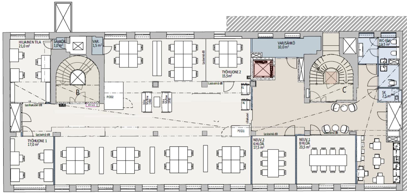 Kiinteistö valmistui mittavasta remontista vuonna 2022. Toimistotila on remontoitu ja se viimeistellään vuokralaisen tarpeen mukaisesti.