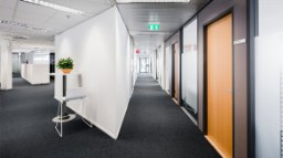 Toimisto koostuu avotilasta, useista työ-/neuvotteluhuoneista sekä erillisistä keittiöllisistä taukotiloista.