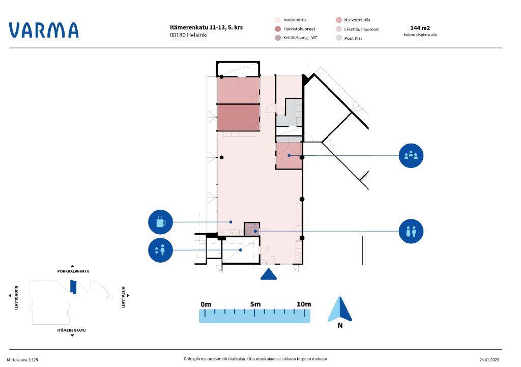 Vuokrataan Helsingin Ruoholahdesta viidennen kerroksen 144 m² toimistotila.