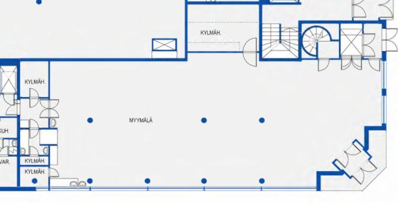 Vuokrataan Helsingin Kalliosta 466 m² liiketila kulma sisäänkäynnillä. Katutasossa on tilasta 272 m² ja kellarissa 194 m². Tila on ollut aikaisemmin myymälä käytössä.
