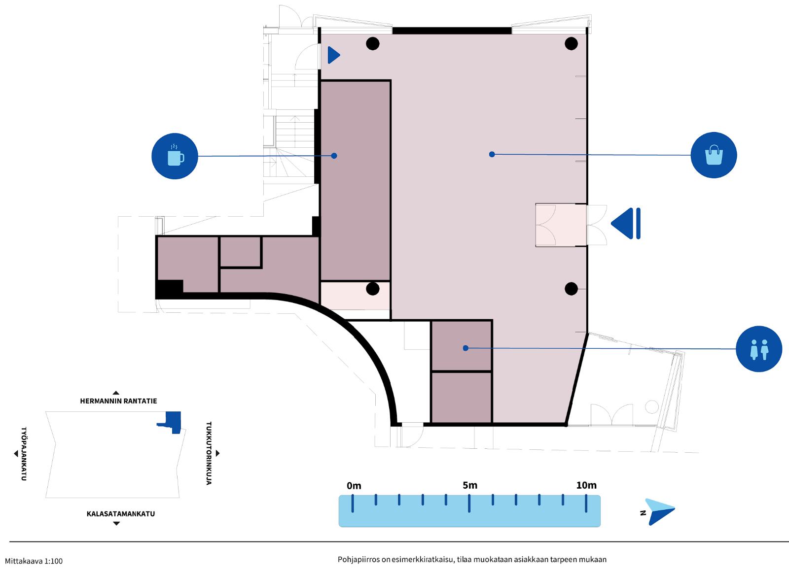 Vuokrataan Helsingin Kalasatamasta katutasosta 180 m² liiketila omalla sisäänkäynnillä.