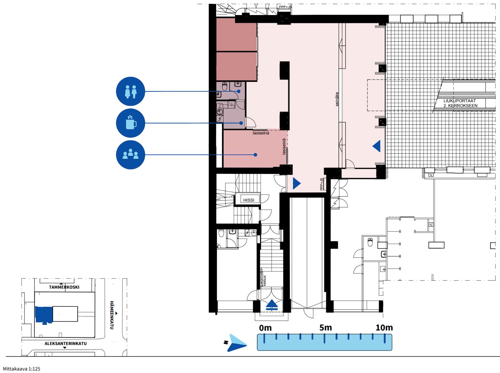 Vuokrataan Tampereen keskustasta Hämeenkatu 9 sisäpihalta 169 m² liike-/toimistotila.
