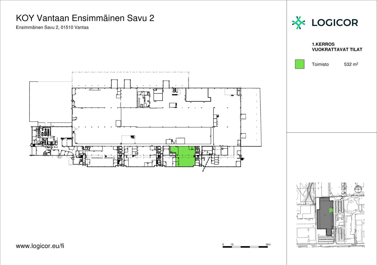 Kohde sijaitsee loistavalla paikalla Vantaan Aviapoliksen business-alueella Kehäradan varrella ja Kehä III:n läheisyydessä. Lentoasema on noin 3 km päässä. Matkaa Aviapoliksen juna-asemalle on noin 1 km. Piha-alueella on runsaasti pysäköintipaikkoja.