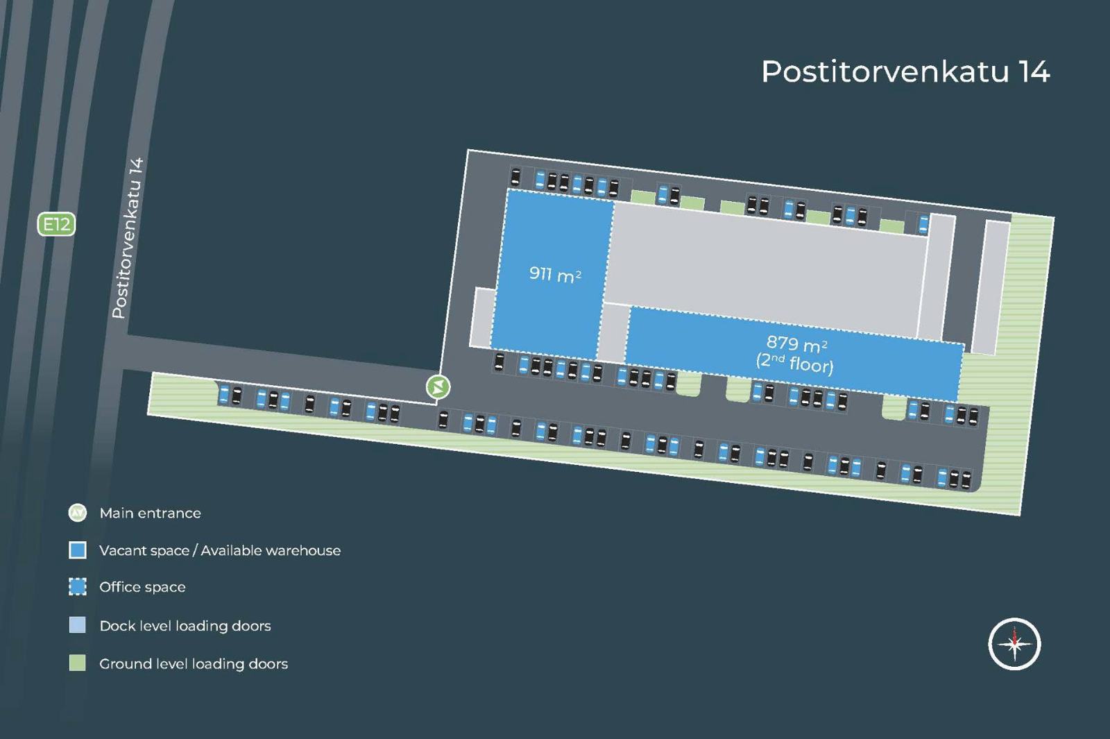 Vuokrataan 911 m² tuotanto-/varastotilaa kahdella maantason nosto-ovella. Tila sopii hyvin myös korjaamokäyttöön. Tilassa on öljyn- ja hiekanerotuskaivot. Lisäksi tilaan sisältyy omat taukotilat, ja lisätoimistotilaa on vuokrattavissa käyttäjän tarpeiden mukaan.