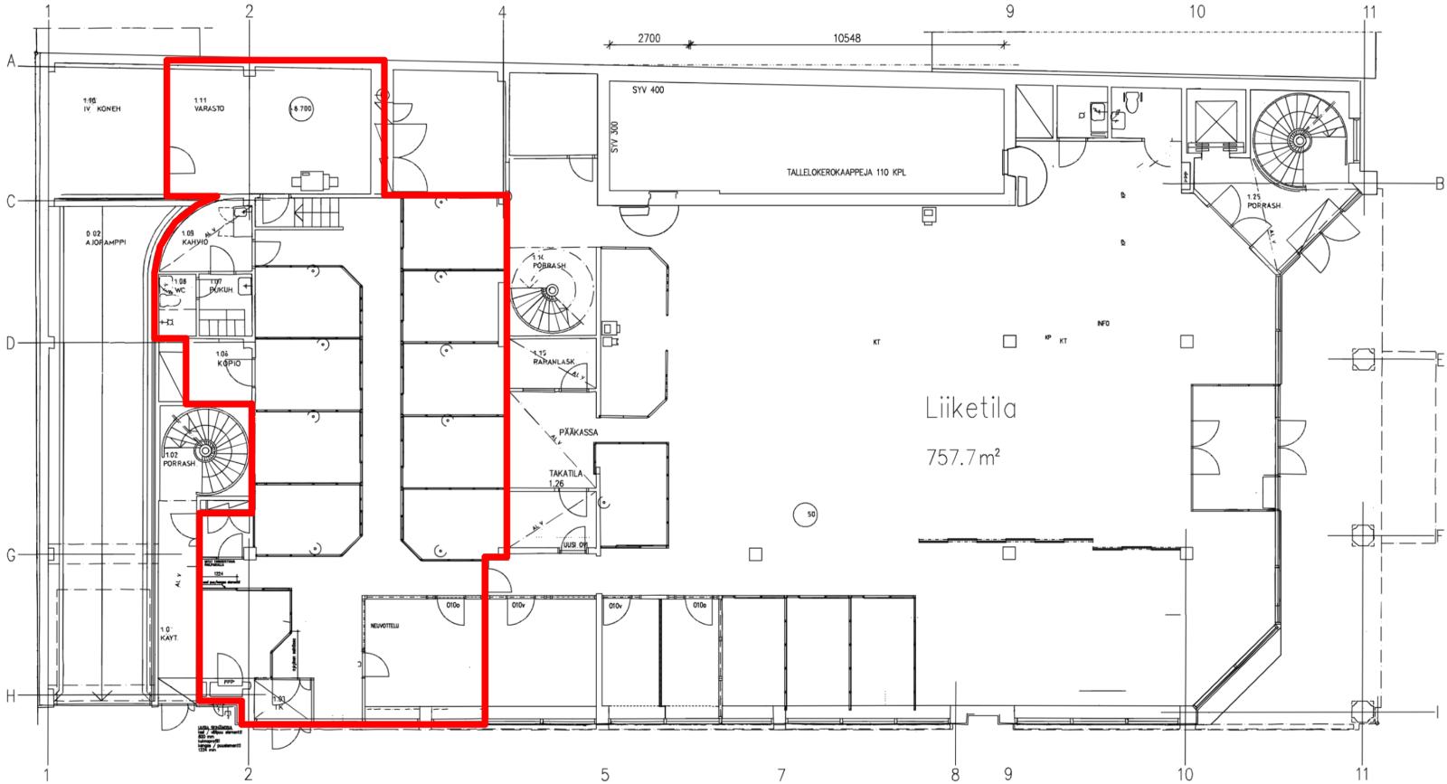 Toimisto koostuu työ-/neuvotteluhuoneista sekä erillisestä keittiöllisestä taukotilasta. Tilaa voidaan muokata tarpeiden mukaisesti.