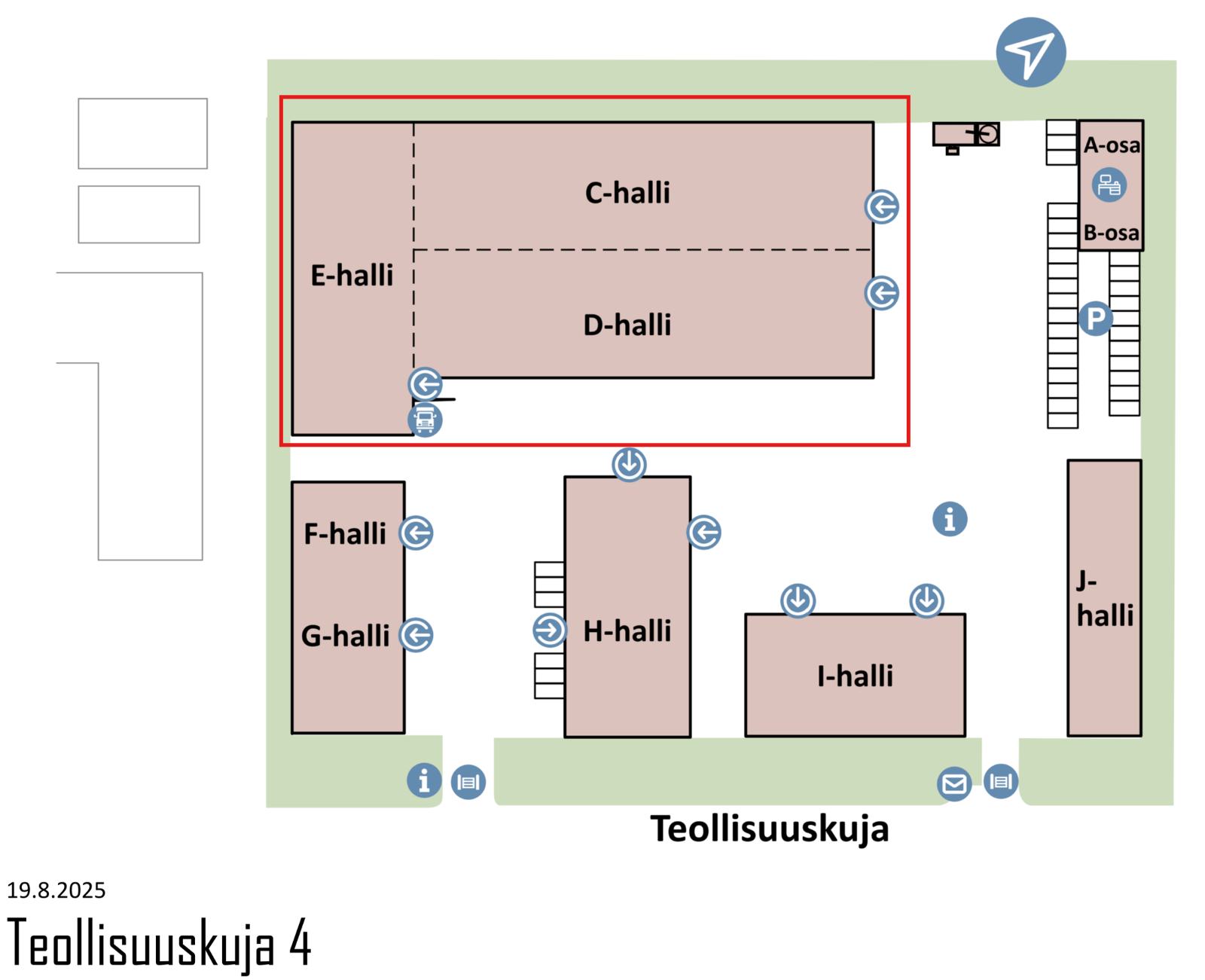 Vuokrataan Tuusulasta 4 255 m² tuotanto-/tehdastilaa. Tila käsittää hallit C, D ja E kokonaisuutena. Hallitilojen yhteydessä hyvät tauko- ja pukuhuonetilat.