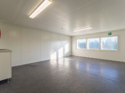 Tilan mitat ovat pituus 8,45 m × leveys 4,50 m × korkeus 5,00 m. Tilan lattiapinta- ala on 38 m² (sisältäen pienen wc- tilan) ja lisäksi tilassa on 27 m² parvi. Tilaan on sähkökäyttöinen nosto-ovi (L 3,45 m × K 3,90 m) erillisellä käyntiovella.