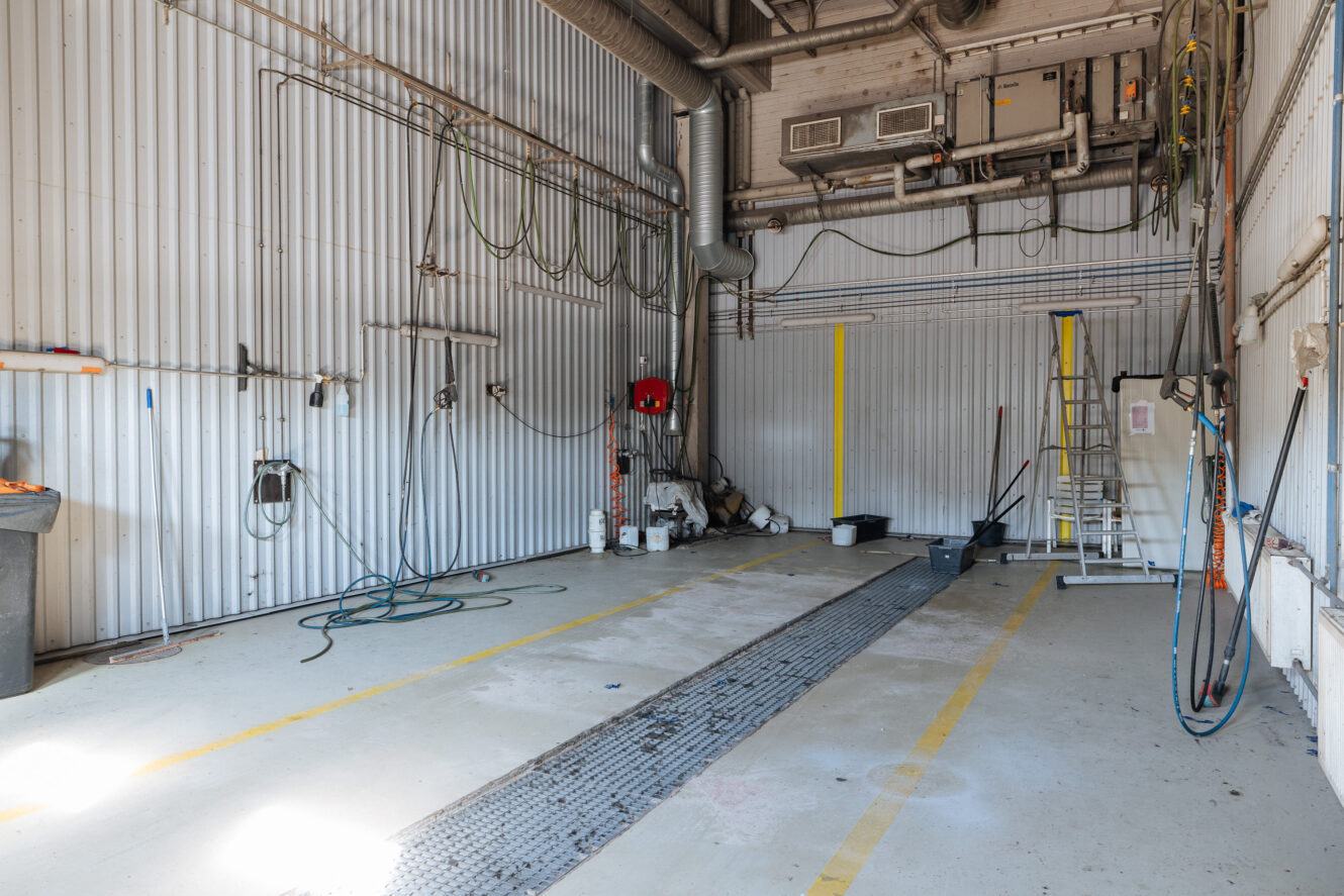 Korjaamotilat käsittävät avaran korjaamohallin, sosiaalitilat, reilun varastotilan sekä erillisen ajoneuvojen pesutilan. korkeita nosto-ovia on kohteessa yht. 17 kpl ja tilan vapaa korkeus on n. 6 m. Paineilmaputkistot kiertää tilat kauttaaltaan.