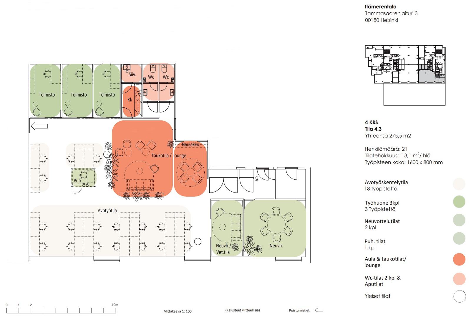 Vuokrataan Helsingin Ruoholahdesta neljännen kerroksen 275 m² toimistotila.