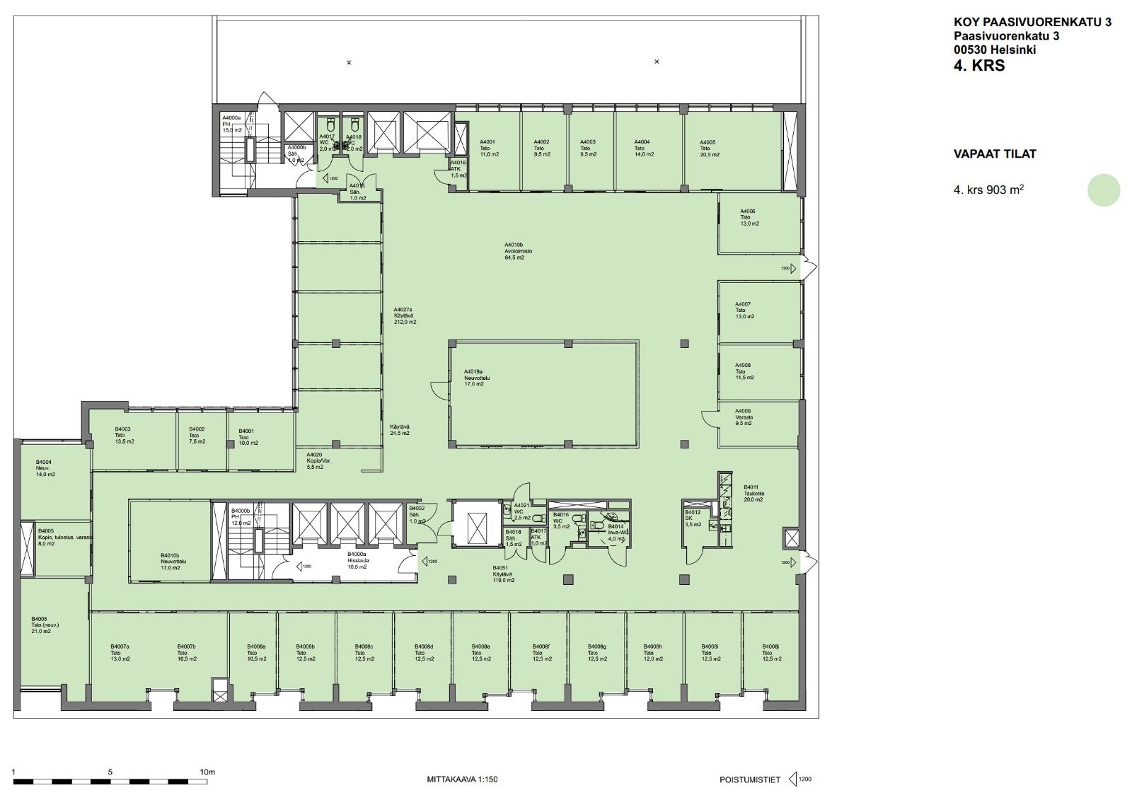 Vuokrataan Helsingin Hakaniemestä neljännen kerroksen 902 m² toimistotila.