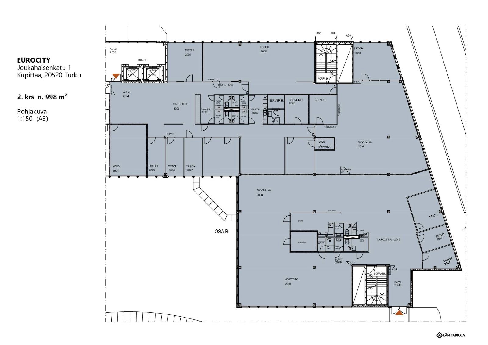 Vuokrataan Turun Kupittaalta toisen kerroksen 998 m² toimistotila.