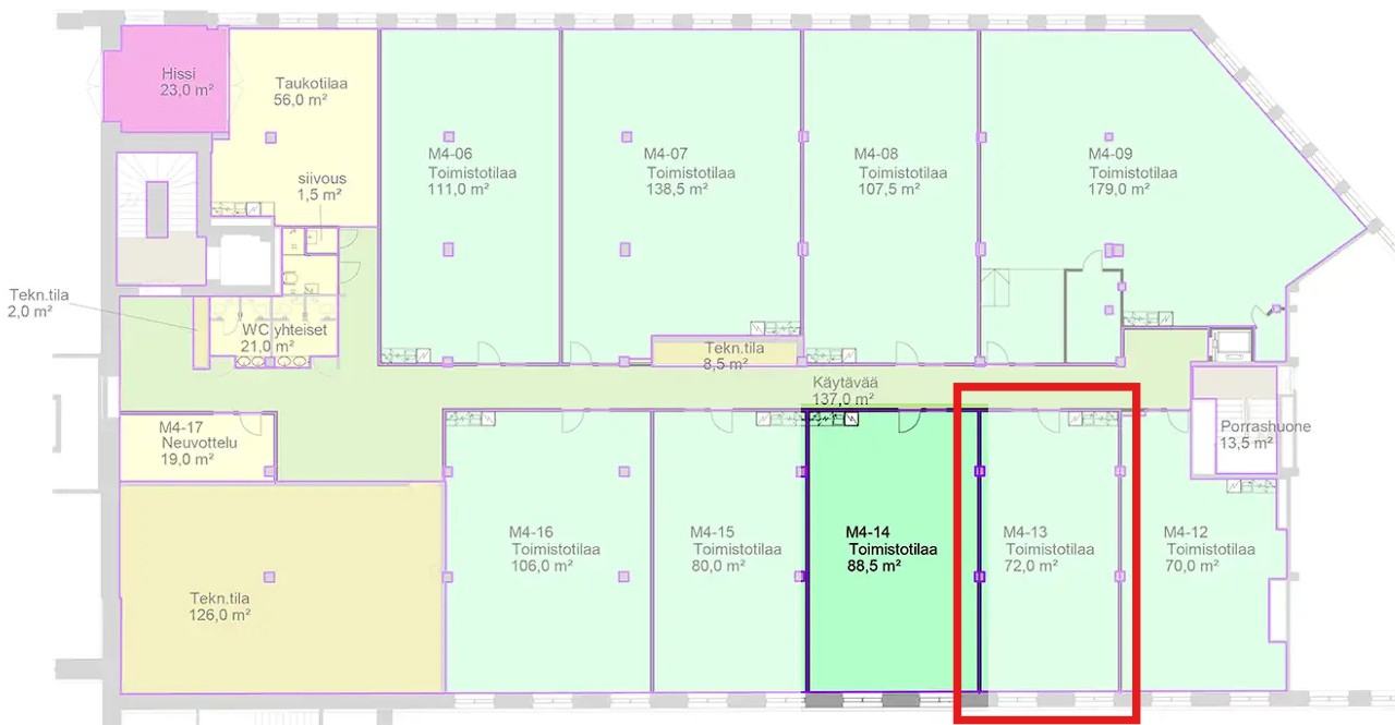 Vuokrataan Tampereen keskustasta Finlaysonin alueelta neljännen kerroksen 72 m² toimistotila.